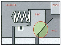 Описывает герметизирующую способность клапана. Во время испытания клапана давлением газа в закрытом положении, утечка, прошедшая седло, собирается и пропускается сквозь воду в виде пузырьков. Чтобы квалифицировать клапан как герметичный, в течение указанного промежутка времени не должно наблюдаться пузырьков.