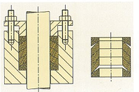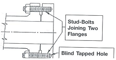 Соединение на фланцевом конце или выходное соединение, в котором **закреплённые в резьбе шпильки**, ввинченные в отверстия с резьбой, **заменяют отверстия для болтов**.