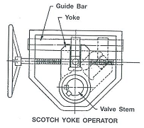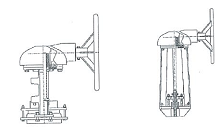 Приведение клапана в действие путем передачи, в которой оси двух валов пересекаются, а рабочие зубчатые поверхности передаточного механизма имеют коническую форму. Передаточное число этого механизма определяет достигаемое отношение крутящих моментов. Главным образом, этот механизм используется в задвижках.