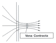 Часть потока, в которой **скорость текучей среды максимальна**, а **статическое давление и площадь поперечного сечения минимальны**. В регулирующем клапане, местное сужение потока обычно возникает **за фактическим физическим ограничивающим фактором**.