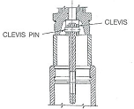 На конце штока располагается соединительный U-образный хомут, между концами которого, может закрепляться штифтами или болтами задвижка или другая часть. Позволяет вращать соединенные части вокруг оси шпильки.