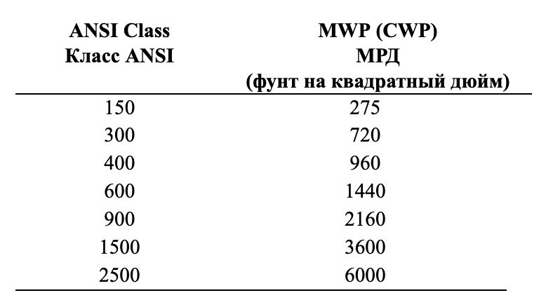 Числовой класс проектирования давления, определенный в ASME B16.5, и используемый в качестве справочной информации. Класс оценки ANSI обозначается словом “Класс”, за которым следует номер.